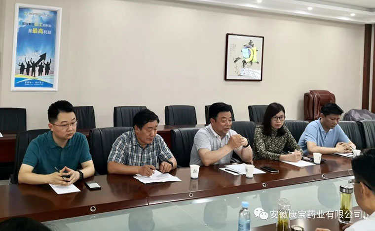 6月23日上午,淮南市政府副秘書(shū)長(zhǎng)聶友俠、淮南市商務(wù)局局長(zhǎng)梁廣賢、淮南市大通區(qū)常務(wù)副區(qū)長(zhǎng)明冠雷、淮南市市場(chǎng)中心主任童志友、大通區(qū)商務(wù)局副局長(zhǎng)江萍,來(lái)到康寶藥業(yè)走訪調(diào)研。康寶藥業(yè)董事長(zhǎng)朱興林熱情接待了各位領(lǐng)導(dǎo)并陪同調(diào)研。